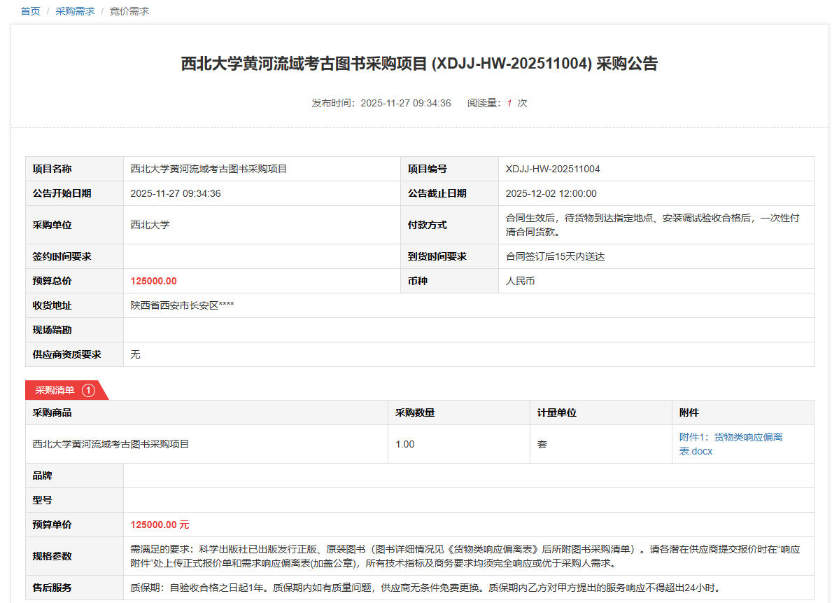 乐鱼网页版页面登录黄河流域考古图书采购项目(XDJJ-HW-202511004)竞价采购公告
