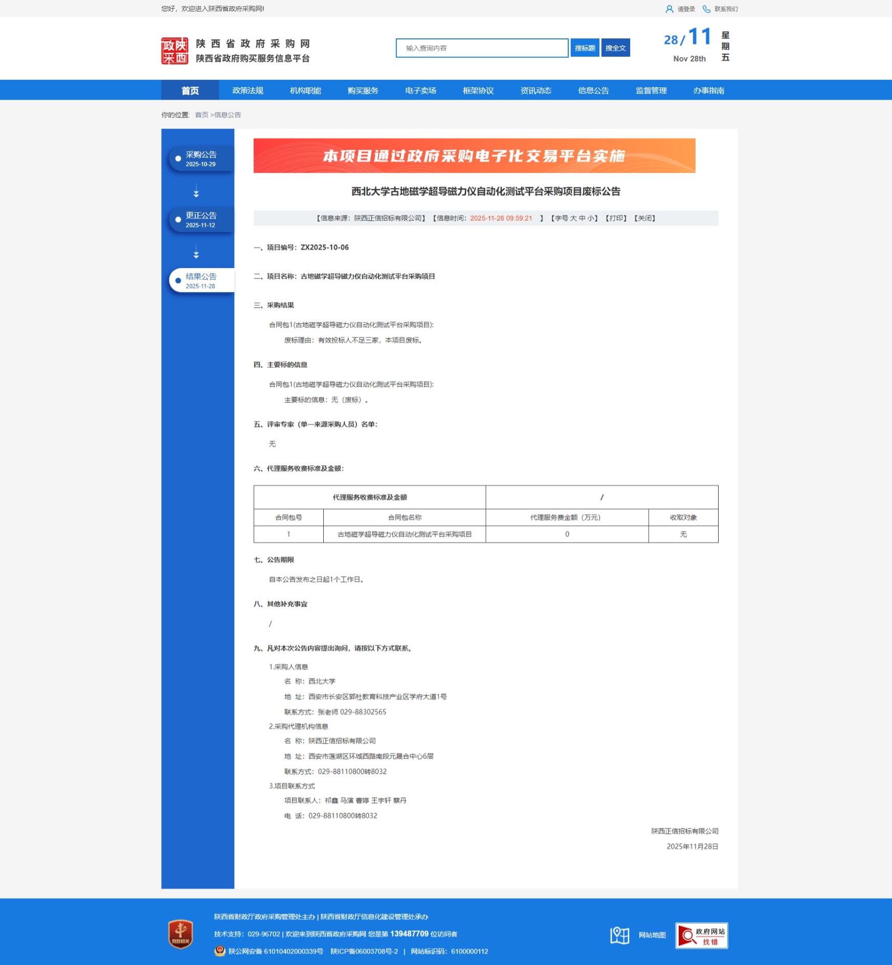 乐鱼网页版页面登录古地磁学超导磁力仪自动化测试平台采购项目废标公告 作者: 编辑:国有资产管理处 时间:2025-11-28 原公告链接:https://www.ccgp-shaanxi.gov.cn/freecms/site/shaanxi/ggxx/info/2025/8a69c0019a9a55ca019ac81cae6226cf.html?noticeType=001006¬iceId=19e4ba5f-cc00-11f0-8063-08c0eb20c666