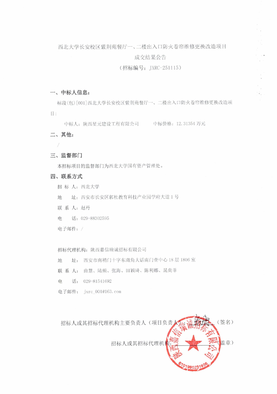 乐鱼网页版页面登录长安校区紫荆苑餐厅一、二楼出入口防火卷帘维修更换改造项目成交结果公告