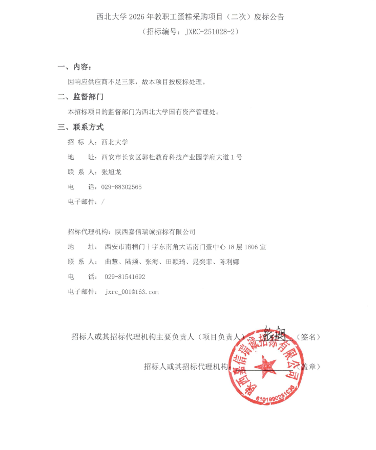 乐鱼网页版页面登录2026年教职工蛋糕采购项目(二次)废标公告