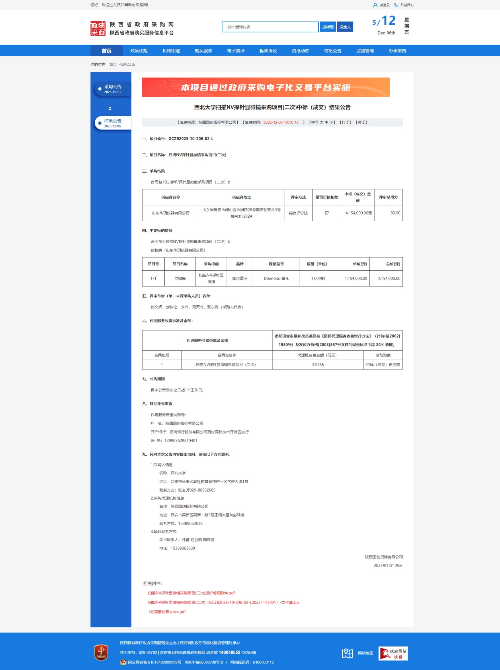 乐鱼网页版页面登录扫描NV探针显微镜采购项目(二次)中标(成交)结果公告 作者: 编辑:国有资产管理处 时间:2025-12-05 原公告链接:https://www.ccgp-shaanxi.gov.cn/freecms/site/shaanxi/ggxx/info/2025/8a69c6d09a636c6c019aec5eb1f2525e.html?noticeType=001021¬iceId=6321a54d-d187-11f0-8063-08c0eb20c666