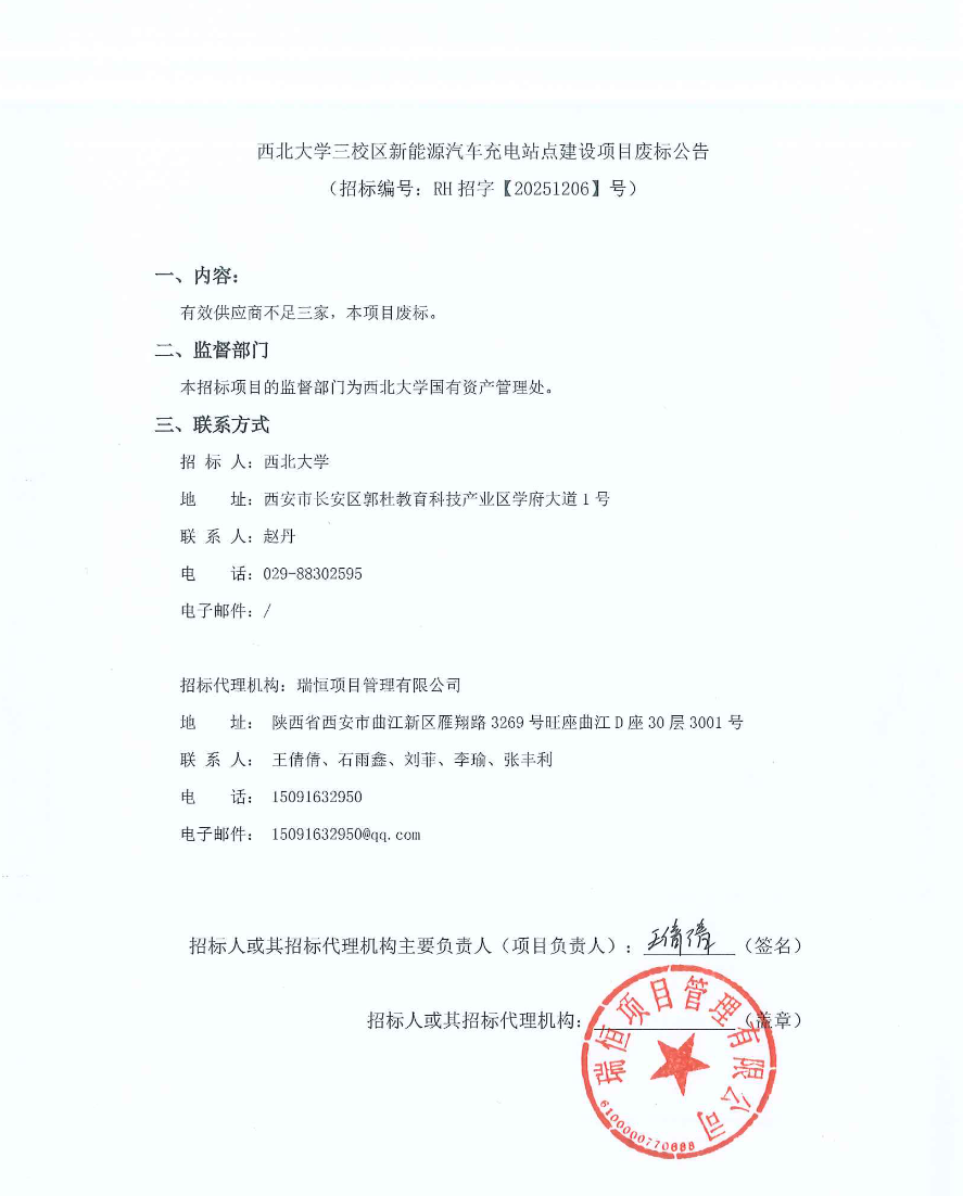 乐鱼网页版页面登录三校区新能源汽车充电站点建设项目废标公告