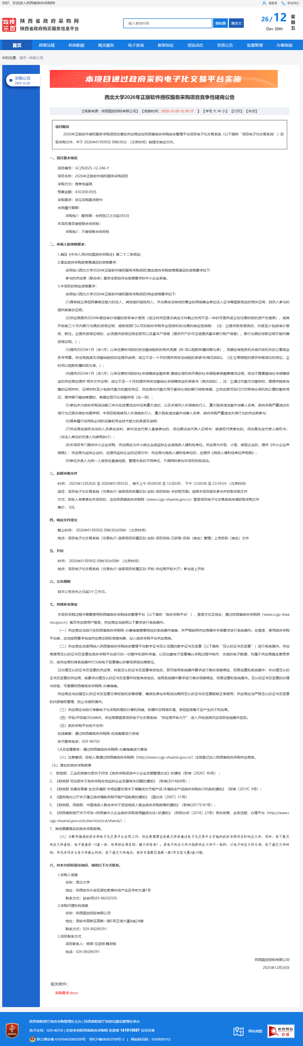 乐鱼网页版页面登录2026年正版软件授权服务采购项目竞争性磋商公告