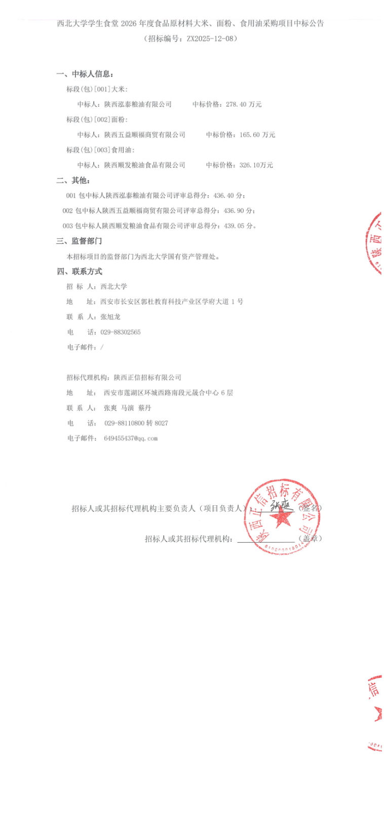乐鱼网页版页面登录学生食堂2026年度食品原材料大米、面粉、食用油采购项目中标公告