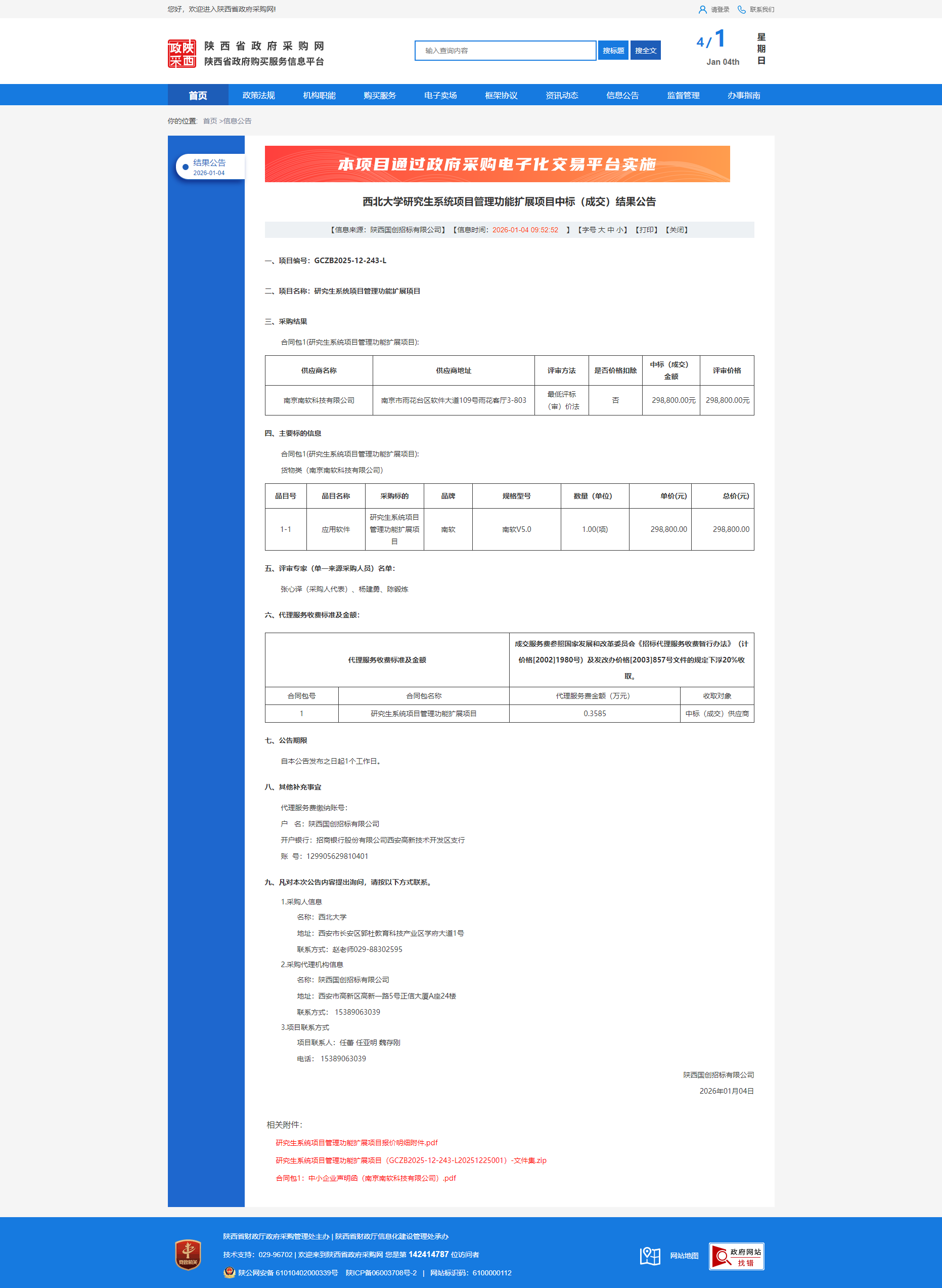 乐鱼网页版页面登录研究生系统项目管理功能扩展项目中标(成交)结果公告